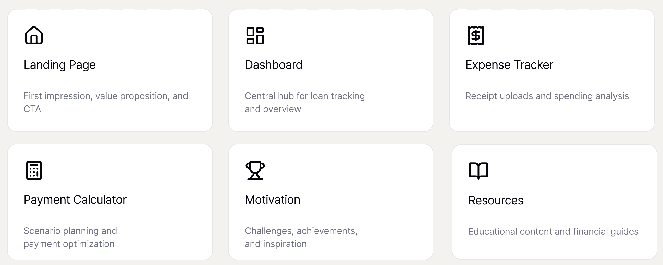 As a designer, I focused on creating a clear and motivating experience that helps students feel in control of their loan journey. The goal was to combine smart functionality with human-centered design to make repayment feel simpler and more empowering.