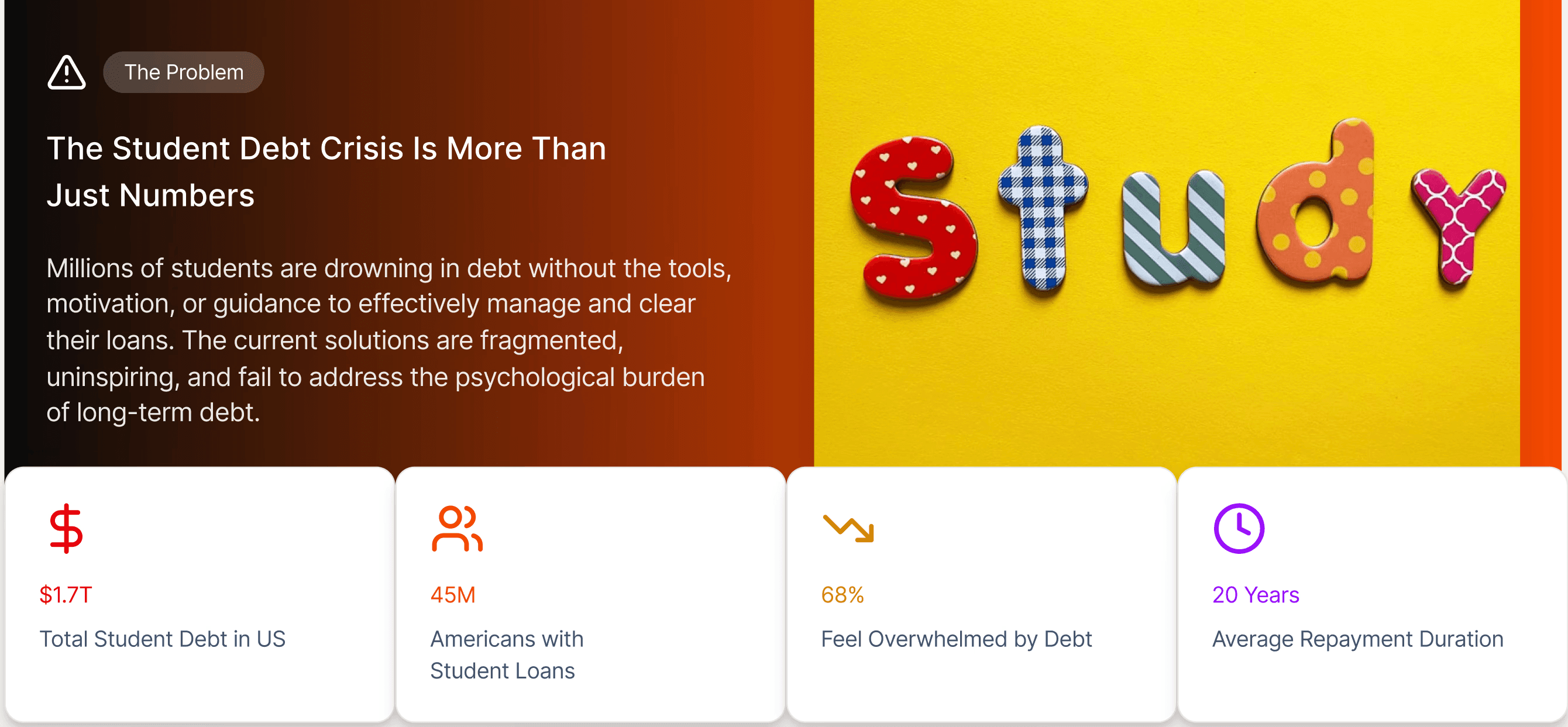 LoanClear is a fintech platform designed for students — empowering users to take control of their student loans through smart tracking, timely reminders, and motivational tools. It merges financial management with behavioral design, making debt repayment more engaging, transparent, and achievable. | ||