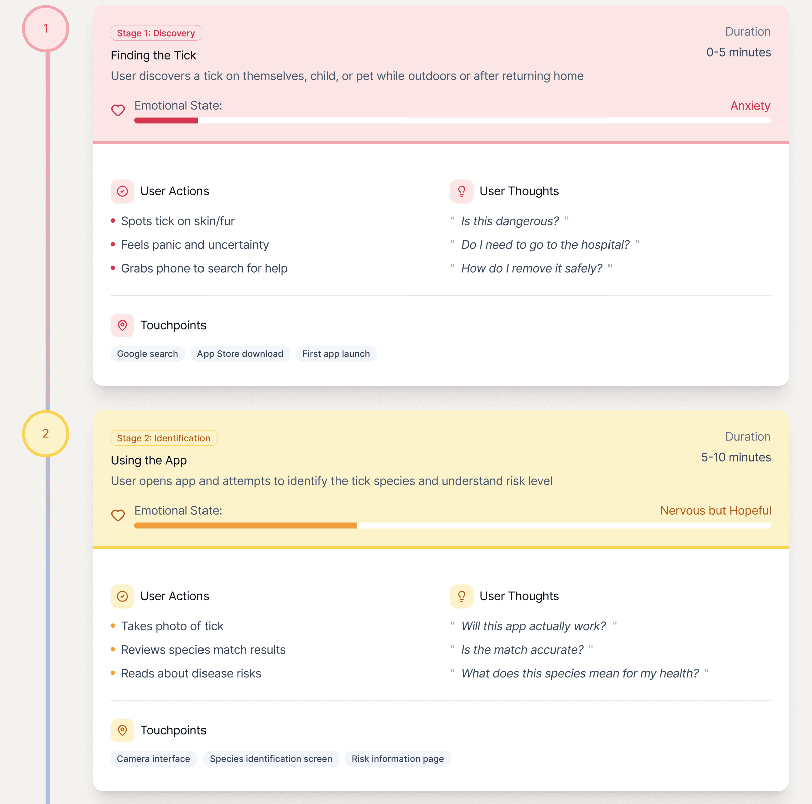 Observed how users navigated critical paths like tick ID, symptom tracking, and education access.