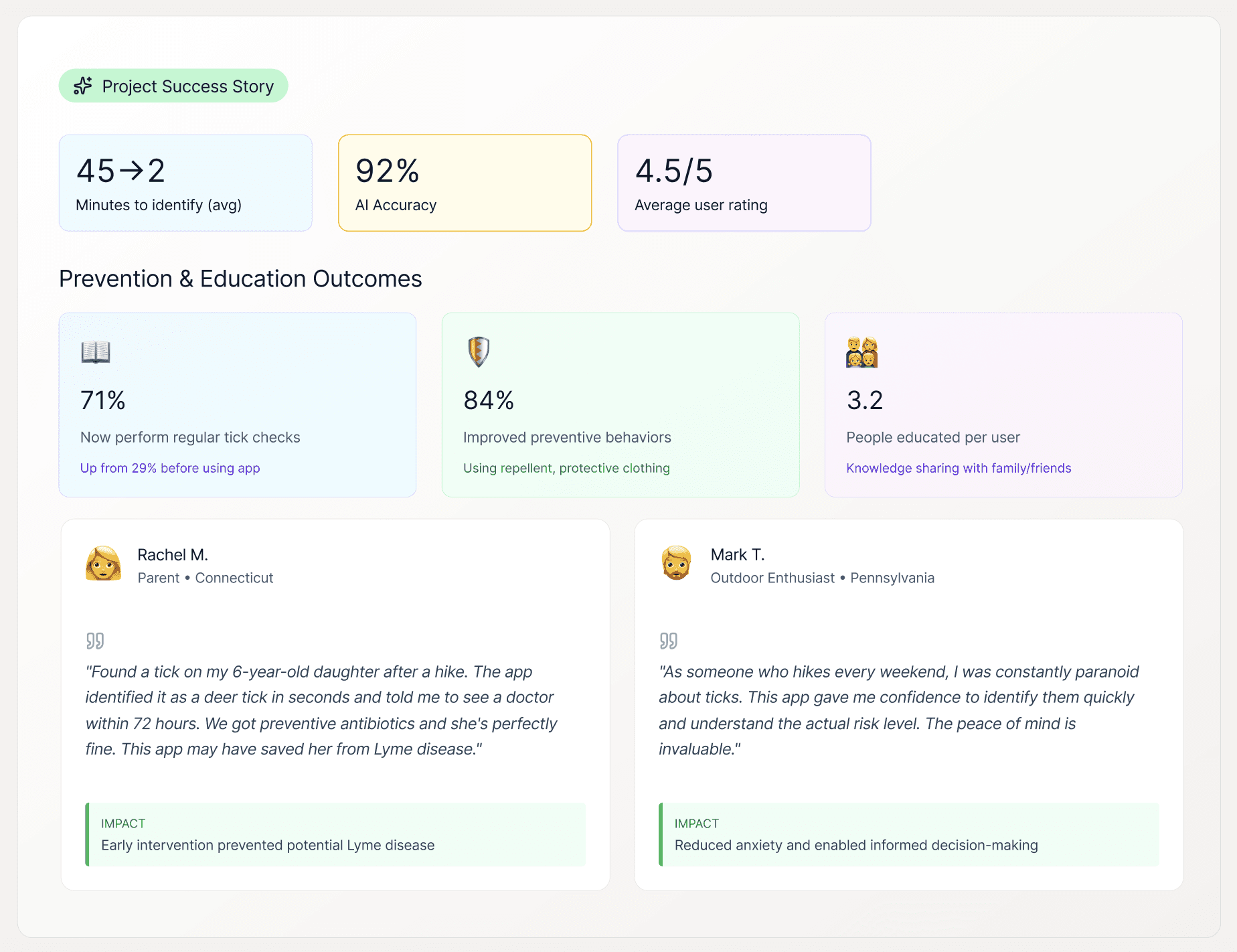 By combining AI technology with industry tick surveillance data, we created a solution that reduced identification time by 87% and helped users get timely medical care.